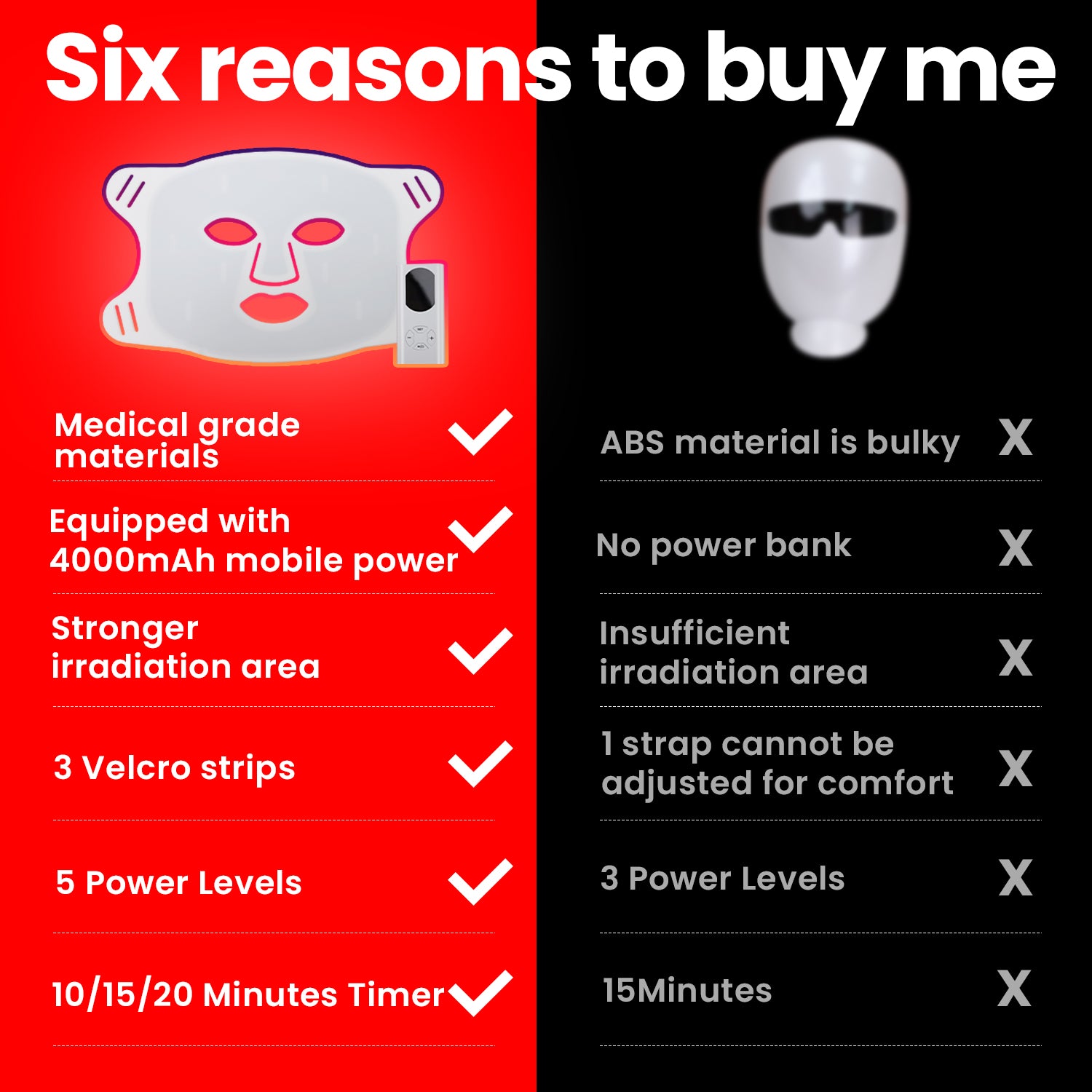 ✔ Tri-Wavelength LED Matrix: Engineered with 234 high-efficiency LED chips (114 on the face mask, 120 on the neck mask) emitting: